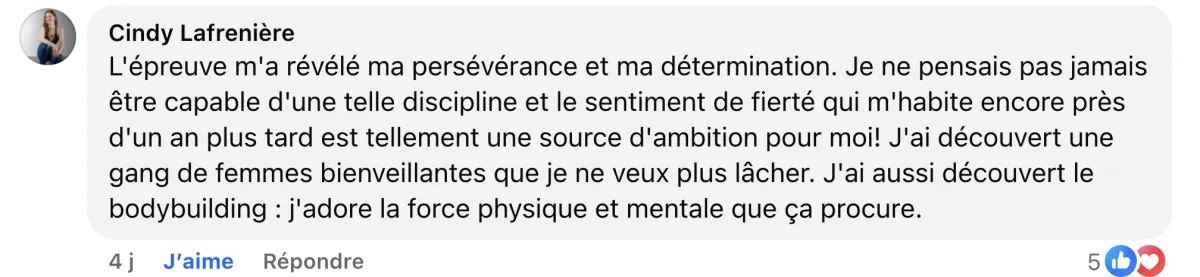 Cette année, je suis plus prête que jamais, mais je veux partager cette expérience avec des femmes déterminées à ressentir la même puissance que moi.